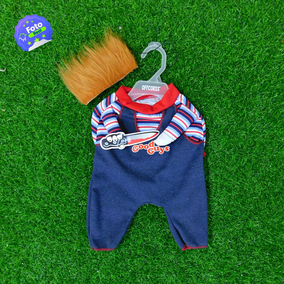 ✔ Colores: camiseta rayada multicolor + overol azul con detalles rojos.