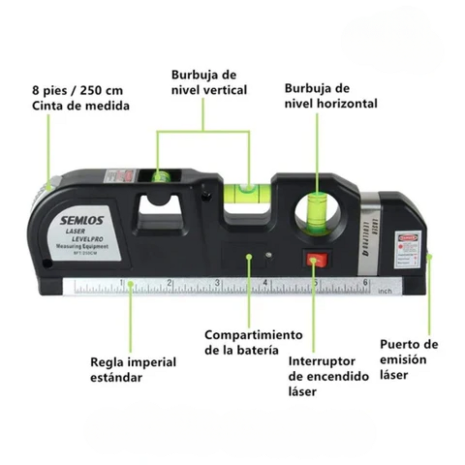 ✅Ahorra tiempo con sus 4 funciones en un solo dispositivo: cinta métrica, nivel láser, regla y nivel de burbuja.