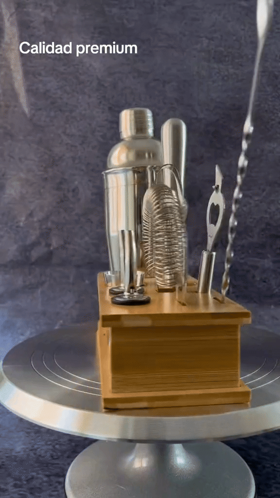 ✔️Piezas incluidas (22): coctelera Boston, colador Hawthorne, jigger, cuchara mezcladora, exprimidor, mortero, pinzas de hielo, sacacorchos, medidores, tapa, entre otros.