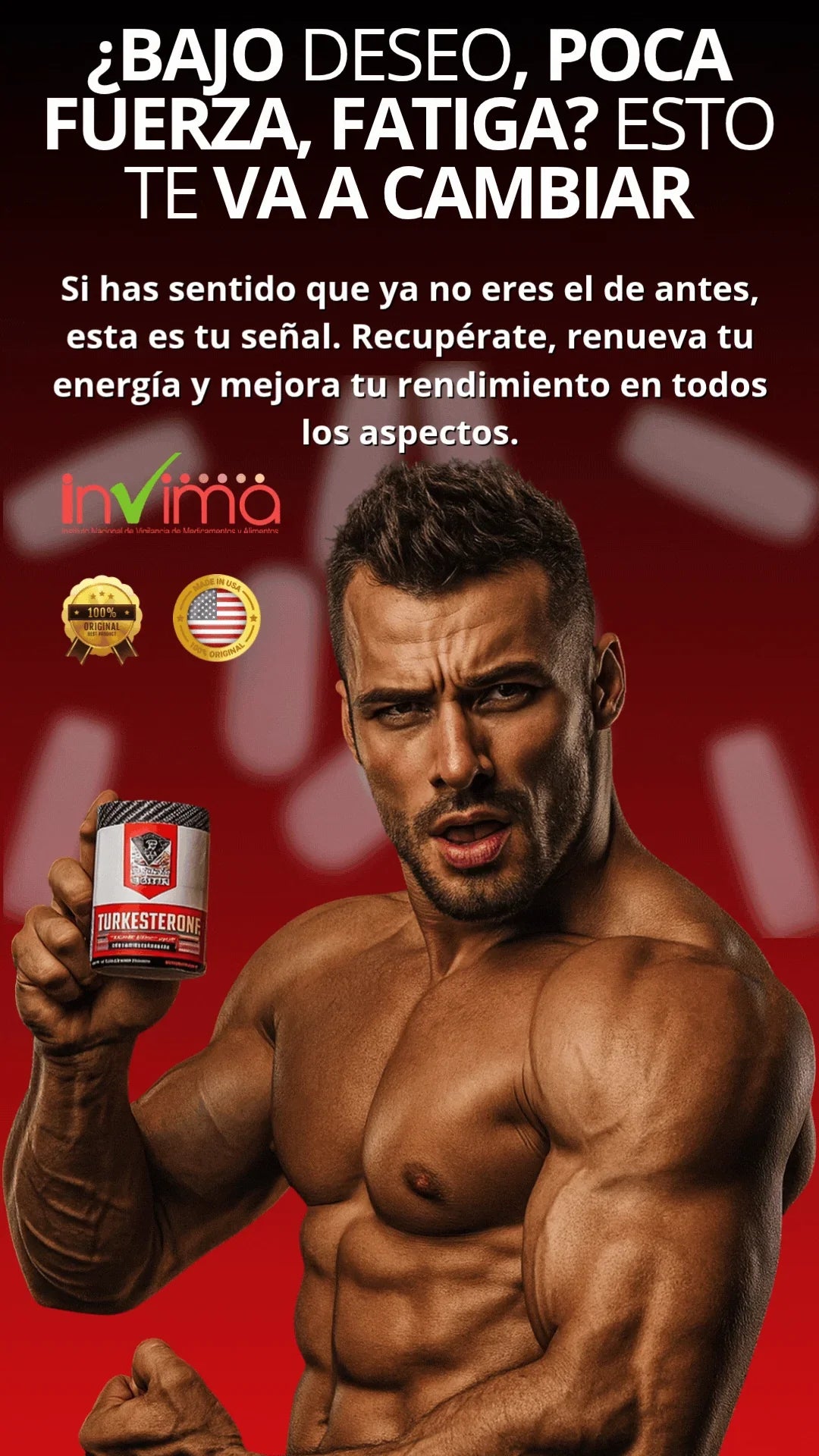 💯 Resultados reales en semanas, gracias a la fórmula avanzada con Turkesterona ultraconcentrada, Tongkat Ali 200:1 y BioPerine® para máxima absorción
